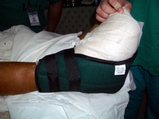 LIGASANO® white PUR foam is very good qualified for wound conditioning of burns. In the following case we report about a 55 years old patient with a carcinoma. This man suffered, as a result of cerebral metastases, from perception disorders and contracted himself 2° to 3° burns on the thigh and the lower leg by hot water during bathing (fig. 1 and 2).